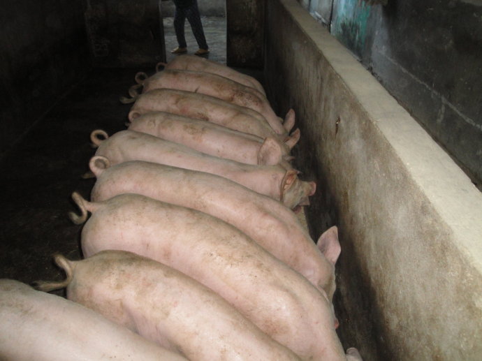 每年春、秋兩季,按時給生豬注射“三聯(lián)苗”,可有效控制豬瘟、豬丹毒、豬肺疫三大疾病,減少死亡率,相對減少耗料。適時出欄肉豬體重在20~90千克時,日增重直線上升,100千克以后生長緩慢,且日增重逐漸下降,故肉豬養(yǎng)到90千克左右時出欄為好。