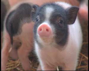 | 純種香豬體型小,被毛黑色、較密、細(xì)有光澤,膚色較黑,頭長額平,頸部皺紋縱橫,耳較小,耳根硬,耳薄向兩側(cè)平伸,眼睛周圍有明顯無毛區(qū),吻端粉紅色或黑色,背腰微凹,腹大、圓、下垂,四肢細(xì)短,尾細(xì)長似鼠尾,奶頭多為5對(duì)。 |