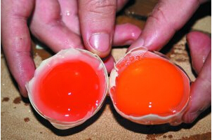 | 蛋黃呈深黃﹑深紅﹑橙紅等色澤的雞﹑鴨蛋稱為“紅心蛋”。不僅可滿足國(guó)內(nèi)消費(fèi)者的需求,還可滿足出口的要求。當(dāng)前雞、鴨蛋出口規(guī)定,蛋黃色澤達(dá)到“3級(jí)”方符合國(guó)際標(biāo)準(zhǔn)。蛋黃色級(jí)從淺到深分為15頃,級(jí)少的色淺,級(jí)多的色深,F(xiàn)將可提高雞﹑鴨等禽類蛋黃色級(jí)的飼料種類及飼喂要點(diǎn)簡(jiǎn)介如下,供飼養(yǎng)戶參考。