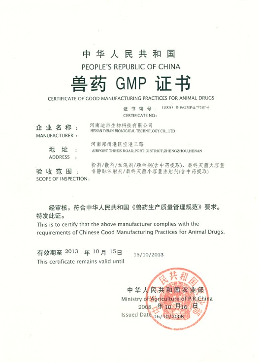 獸藥GMP證書