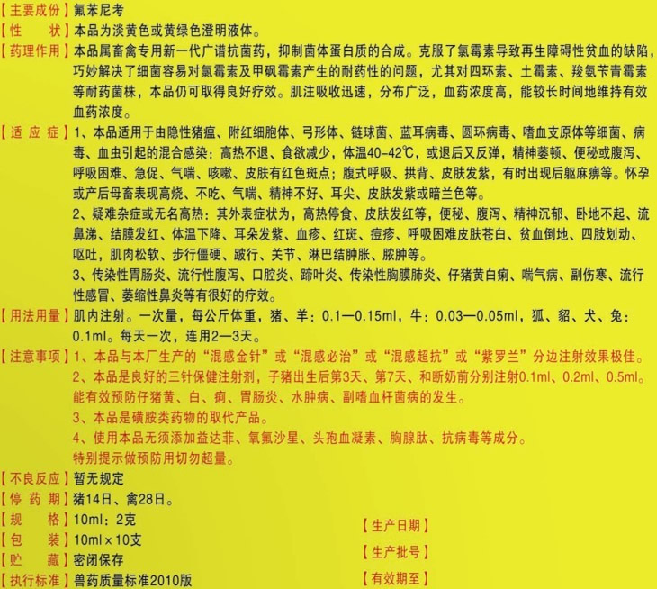 產(chǎn)品名稱: 氟苯尼考注射液