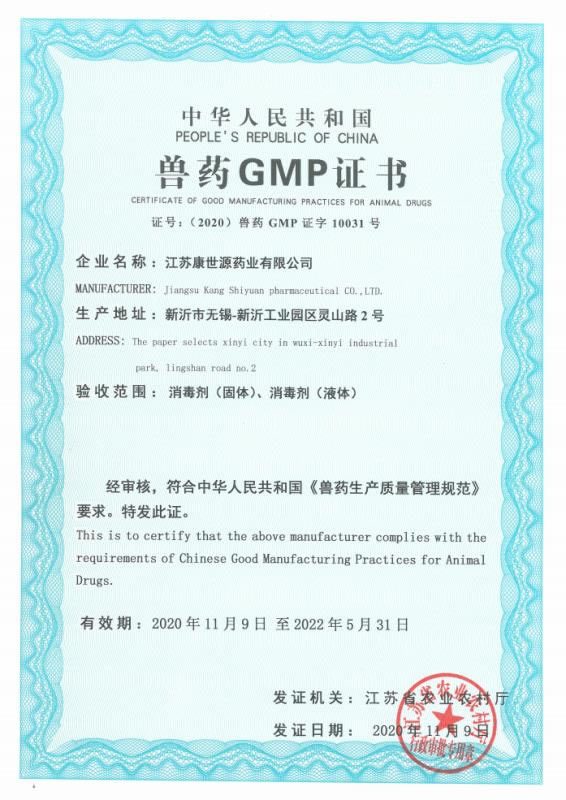 獸藥GMP證書