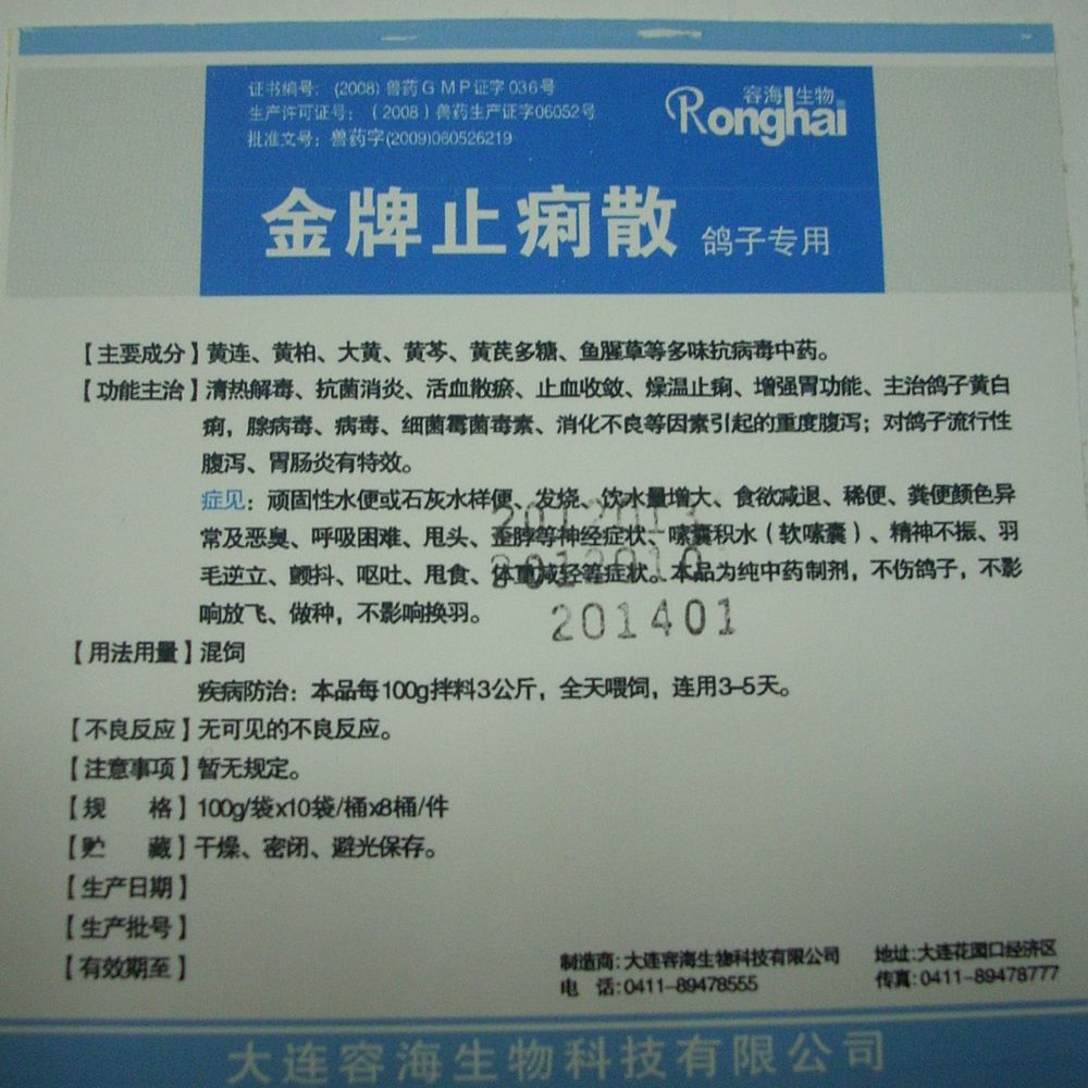信鴿藥 金牌止痢散 鴿子黃白痢