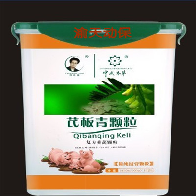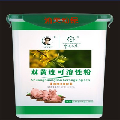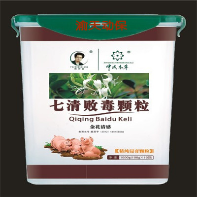 【主要成份】金銀花、大青葉、板藍(lán)根 、柴胡、鵝不食草、蒲公英、紫花地丁、連翹、甘草、天花粉、白芷、防風(fēng)、赤芍、浙貝母、乳香、沒(méi)藥等多種中藥提取有效成分!拘 狀】本品為灰褐色粉末;氣微香,味苦。【藥理作用】 1、抗菌:對(duì)金葡菌、大腸桿菌、溶血性鏈球菌、綠膿桿菌等有抑制作用; 2、解熱、抗炎:顯著降低毛細(xì)管通透性,抑制棉球肉芽組織增生,減少炎性滲出,促進(jìn)炎灶的分解、吸收; 3、免疫增強(qiáng):提高巨噬細(xì)胞吞噬功能和血中r-球蛋白含量,增加抗體生成,提高特異性、非特異性免疫功能; 4、改善微循環(huán):活血化瘀,改善局部微循環(huán),促進(jìn)機(jī)體對(duì)病灶的修復(fù)。 【功能與主治】清瘟敗毒,涼血消斑。主治家畜熱毒壅盛證。對(duì)于豬瘟、豬丹毒、鏈球菌病、無(wú)名高熱、傳染性胸膜肺炎、副豬嗜血桿菌感染癥、壞死性桿菌病、梭菌性腸炎、副豬嗜血桿菌感染病、豬放線菌病、化膿性放線菌病等引起的全身感染及敗血癥有效。病豬表現(xiàn)為精神萎頓,持續(xù)高熱,潰瘍,膿腫,皮膚粘膜發(fā)紺、臟器斑點(diǎn)狀出血,結(jié)膜潮紅,有粘性或膿性分泌物,糞便干結(jié),淋巴結(jié)腫大等癥狀!居梅ㄅc用量】混飼,每噸飼料添加本品200g;混飲,每噸水添加本品100g。病情較重時(shí)可酌情加量或尊醫(yī)囑!静涣挤磻(yīng)】暫未發(fā)現(xiàn)不良反應(yīng)!咀⒁馐马(xiàng)】 1、本品為浸膏類產(chǎn)品,具有粘性,如有結(jié)塊屬正常現(xiàn)象,不影響療效。 2、拌料或飲水時(shí),請(qǐng)充分?jǐn)嚢,使均勻溶解。【?藥 期】暫無(wú)規(guī)定。【規(guī) 格】100g/包【包 裝】藥用鋁箔袋,每包裝100g。【貯 藏】密封保存!居 效 期】2年